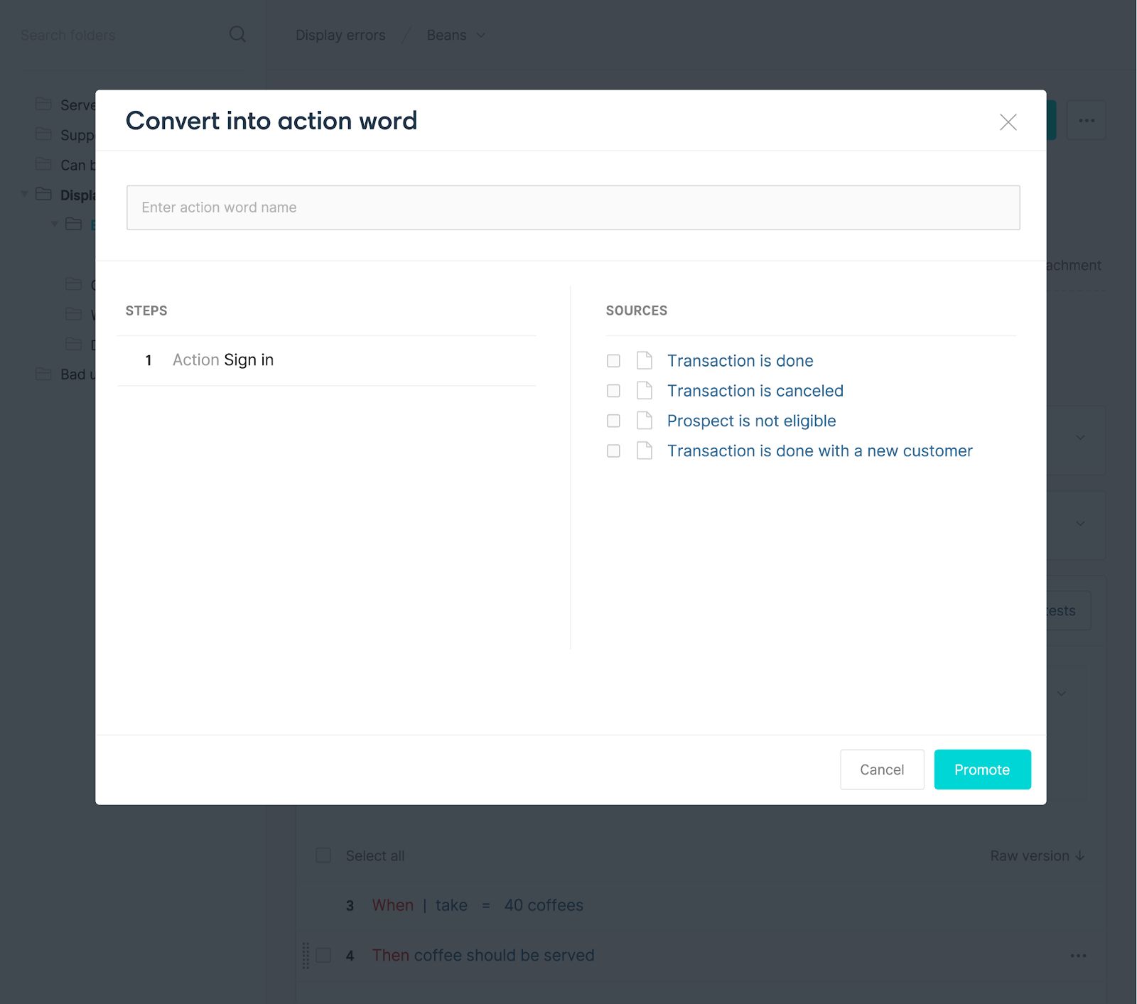 The process might start with a plain-text description, similar to Gherkin: